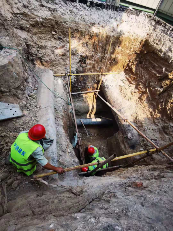 6月18日天剛放亮,早已在施工現場(chǎng)待命的搶修隊伍就開(kāi)始按施工方案進(jìn)行施工。由于地下各管道埋深不同、橫縱交錯,為施工增添不少難度。操作挖掘機時(shí)每一個(gè)動(dòng)作都小心翼翼,生怕一不小心就碰傷周邊管道,對部分狹小的空間只能人工操作…….經(jīng)過(guò)20個(gè)小時(shí)緊張忙碌的奮戰,終于在6月19日凌晨如期完成施工,達到送水條件。